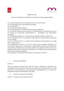 - les archives de plusieurs collectivités : documents produits et reçus par la Ville de Mulhouse, mais aussi plus récemment par les communautés de communes et d’agglomération : Mulhouse Alsace Agglomération, Bassin potassique, Porte de France Rhin Sud…