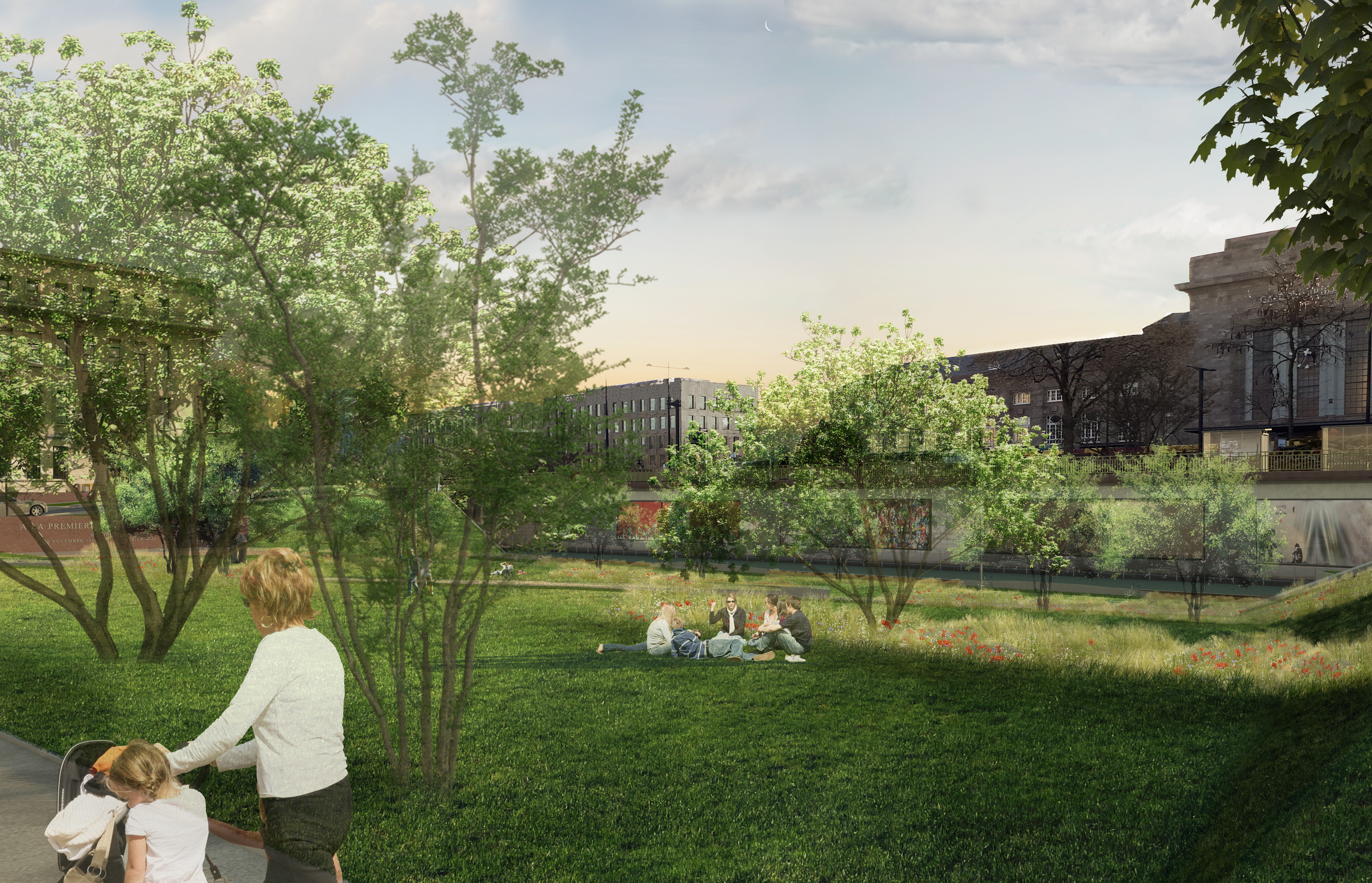 - démolition de la dalle (dédiée jusqu’en 2016 à un parking) pour remettre à jour la présence de l’eau dans le paysage urbain.