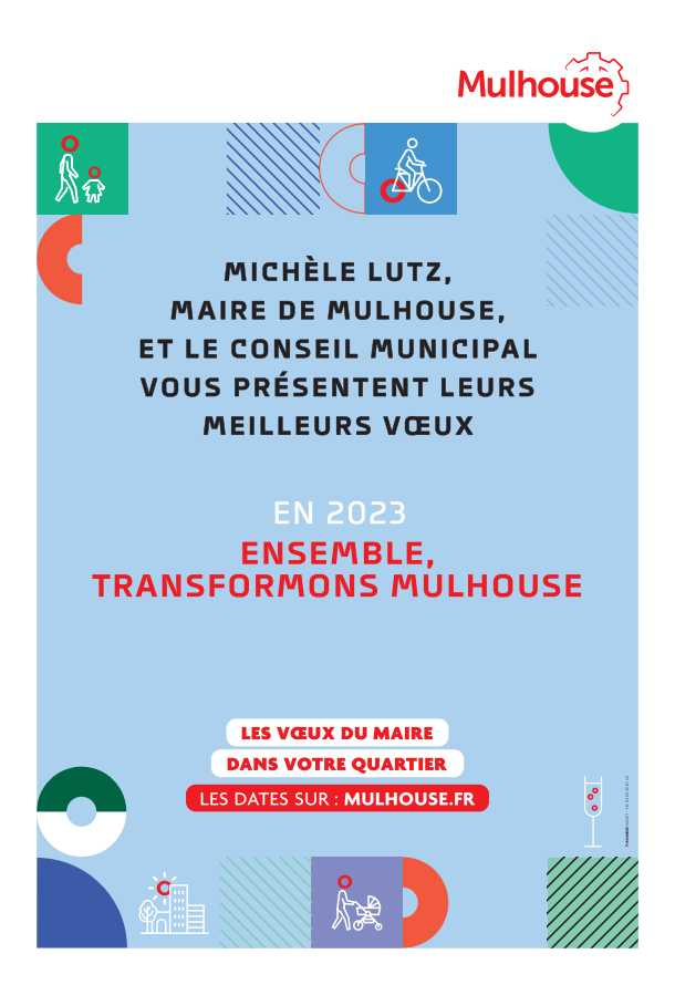 Michèle Lutz, Maire de Mulhouse, entourée du Conseil Municipal, vous présentera ses voeux lors d’un moment d’échange autour de l’action municipale dans votre quartier, pour Mulhouse et les Mulhousiens.